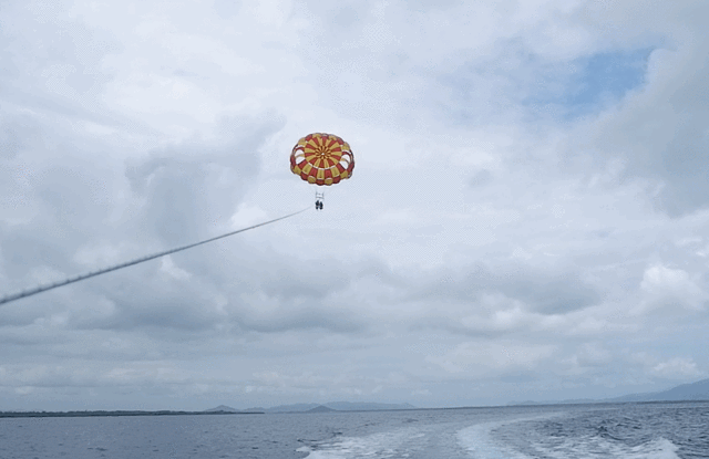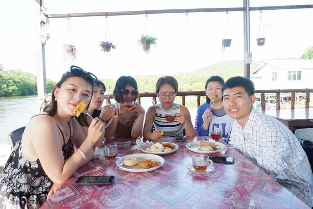 上午海上拖伞。下午热带雨林看长尾猴、寻长鼻猴、鹰隼,咸水鳄,萤火虫。