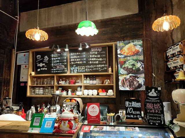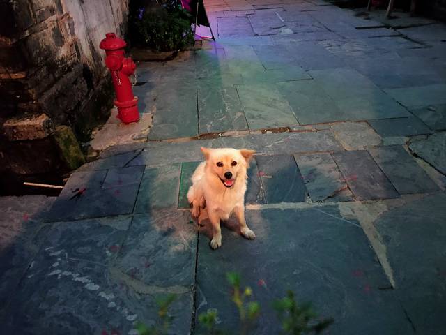 在一间老宅子里吃的,超级棒,狗狗都闻到香味了!