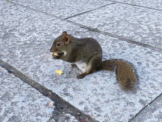 回招待所的路上,看到了小松鼠,我们把蛋糕分给了它,居然一点也不怕!