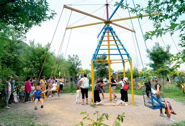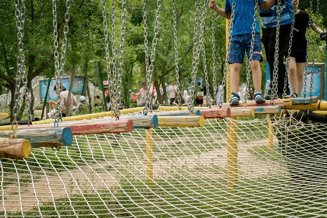 大小朋友都喜欢的游乐项目,有很多小朋友都在排队等待,和传统游乐场的体验不同,这个项目需要家长们共同“出力”才能完成。