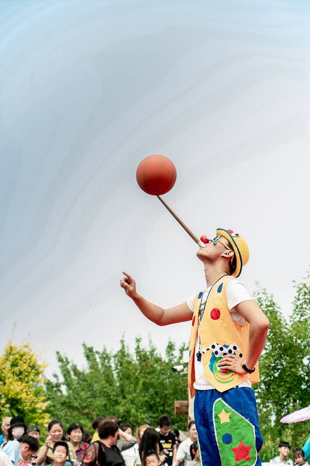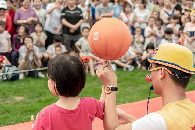 小丑表演是孩子喜欢的经典项目之一,小语看的两眼发直,逗的哈哈大笑。