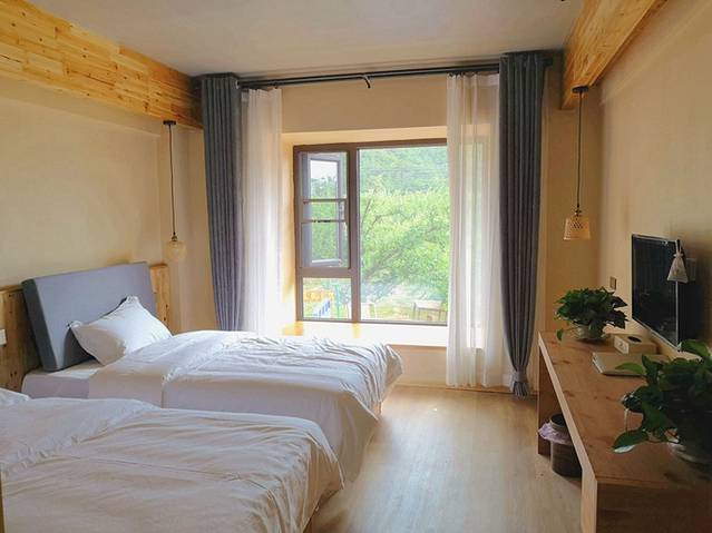 酒店有标准间、阳光房、阁楼房,这次我们选的是阳光房(推荐平日入住,性价比高),办理入住后的小语撒欢儿起来,一会儿到窗前看看,一会儿又试试床品舒不舒服,不过从她的表情里感觉还是挺满意的,哈哈。