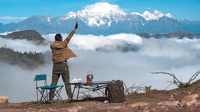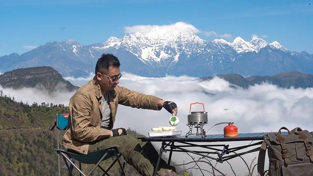 说干就干,温壶沏茶,执一杯热茶,细细品味,展望眼前绵延雪山风景,瞬间发觉,一路上所有的辛苦都随着热茶融化了,唯有一丝心中甘甜!