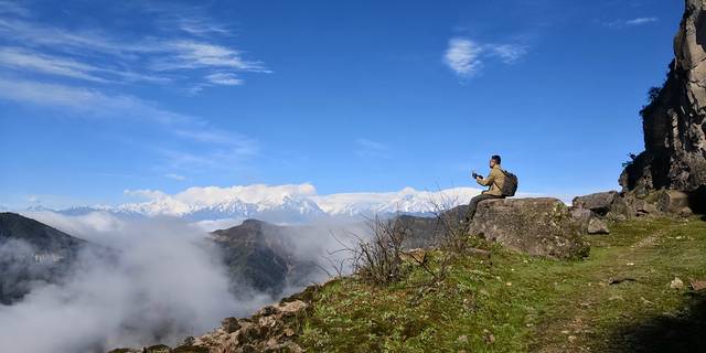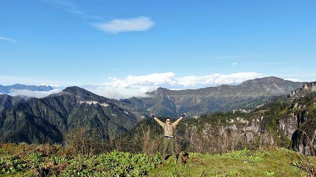 出发前简单做了功课,了解到四人同山和 牛背山 名声相当,同在 四川 省 荥经 县境内。四人同山海拔3510米,是从东面观看 贡嘎 群峰以及雅拉神山, 四姑娘山 和 峨眉山 最好的观景平台。