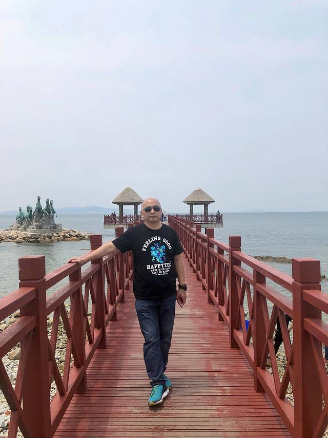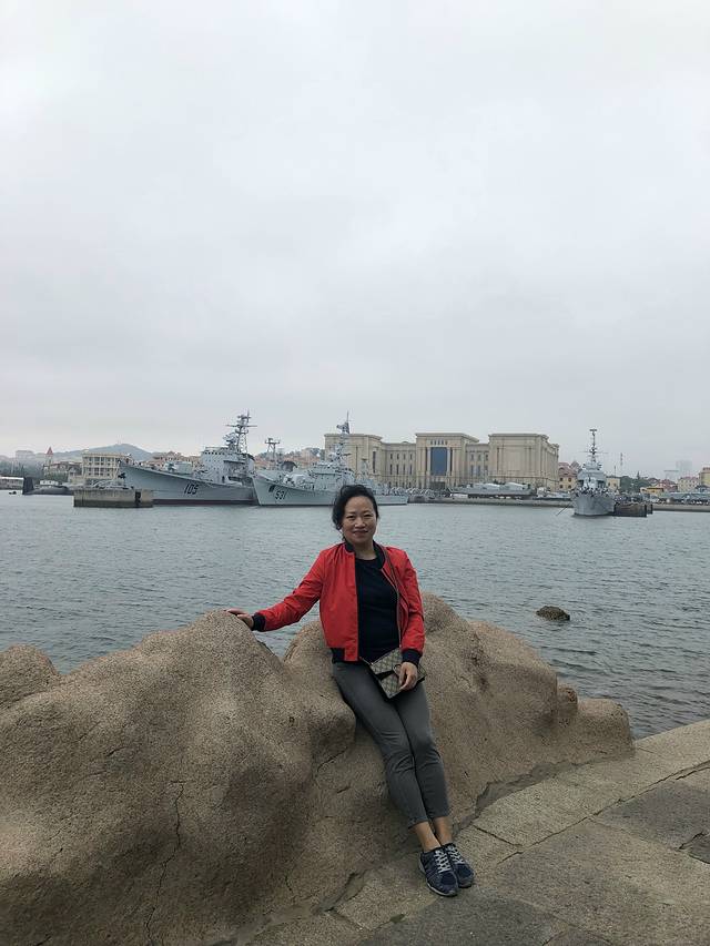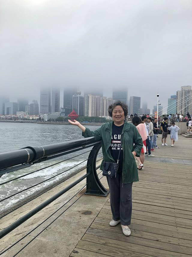 一早公寓出发,妈妈留影此处,很棒的地理位置,阳台可见刘公岛,离刘公岛码头公交就2站路。