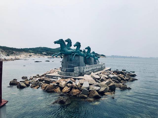 最有名的就是秦风崖了,海上的群马雕像,与层层海浪交相辉映,浪花朵朵,被拍碎在海边的岩石上,衬着蓝天白云,仿佛群马踏着海浪而来,气势磅礴。