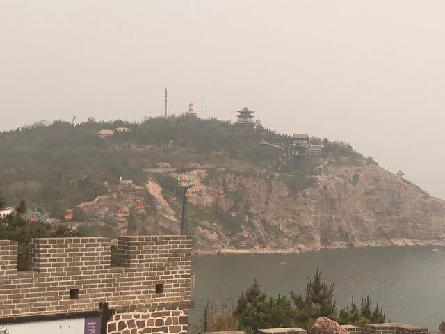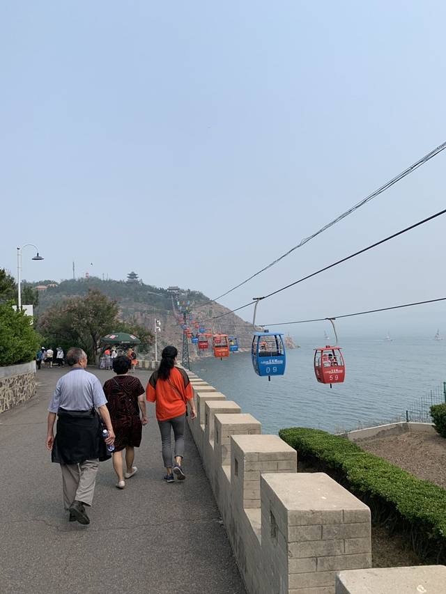 参观完蓬莱阁古建筑可以在此坐缆车前往边上的田横山顶,在缆车上可以俯瞰整个黄海域渤海的交界处。不过好像也看不清楚