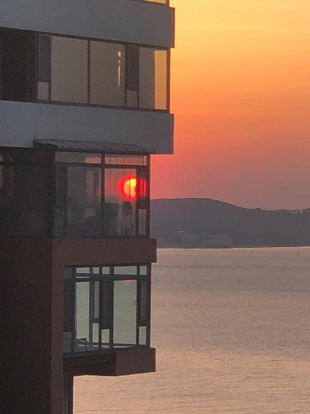 早上4点半的日出,季节的原因,太阳完美的被前一栋房子遮挡