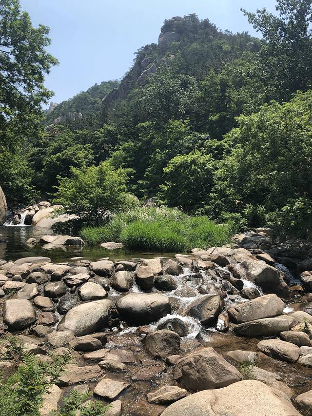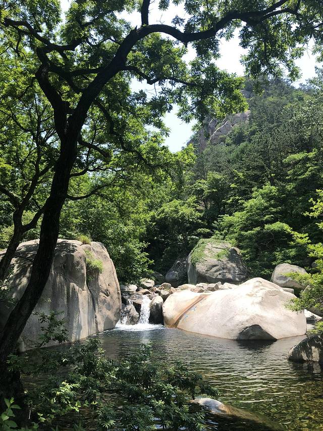 九水游览区位于崂山主峰的北部,是崂山中唯一以赏瀑亲水著称的游览区,也是有名的避暑胜地。其实玩的就是崂山的山坳坳。不过再怎么是山坳坳总会有上上下下比较辛苦,如果不是这天妈妈身体不舒服估计就不会有九水的游览。