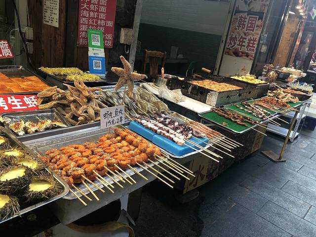 小小的街上汇集了海鲜、小吃、烧烤等各色美食