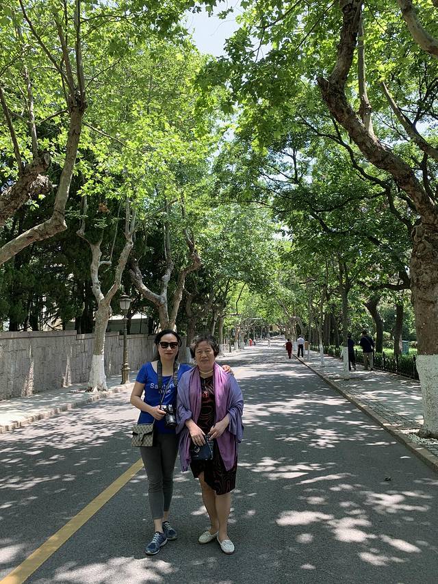 吃完饭再回头说说这个大学路,网上查了一下原来这是一个网红打卡景点,特别是大学路和鱼山路的转角必打卡!大学路两边都是浓郁的梧桐树,树影斑驳,落在地上特别美