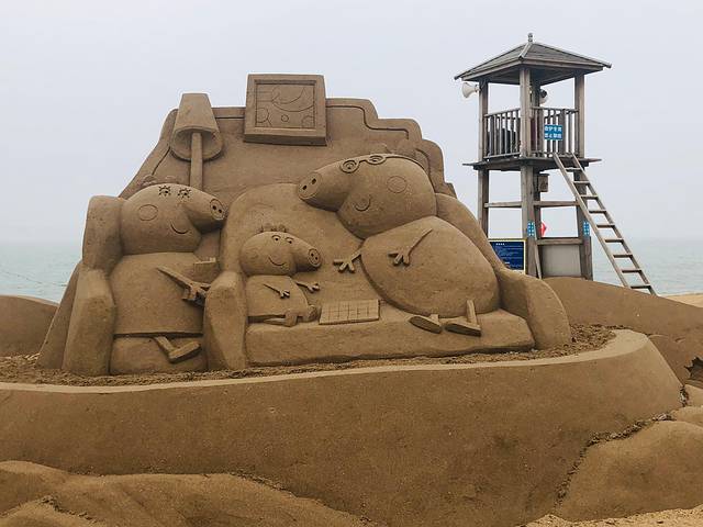 背景中的红色高楼房就是我们这次住的民宿,火车站旁,离栈桥步行10分钟