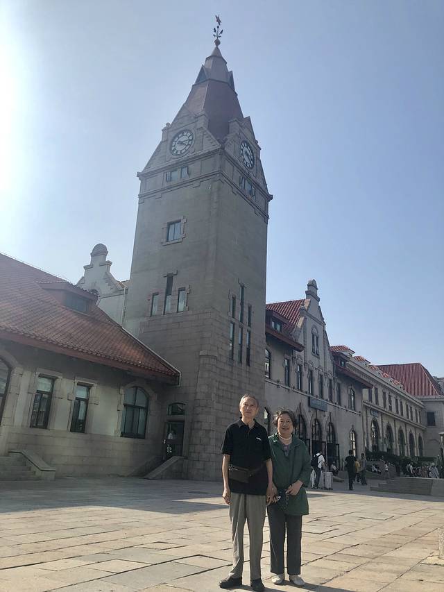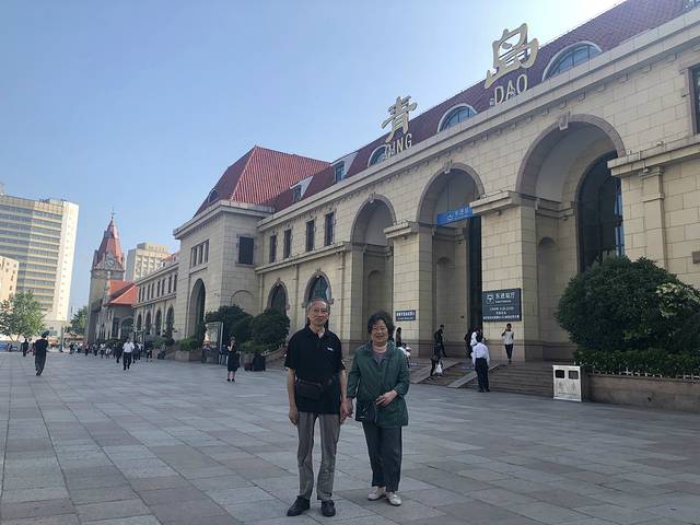 民宿出来不远就是青岛站。这是一组建于1899年的德国文艺复兴风格建筑,它拥有醒目的红瓦黄墙,以及一座尖顶的钟楼,外形很漂亮也很文艺。青岛火车站至今仍在使用,是青岛的地标建筑之一。