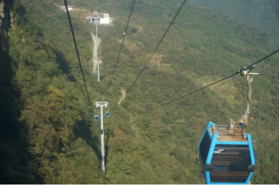从碧潭幽谷出来就是索道下站,可以直接坐索道上山,往返是80元,索道的角度非常大,晴天时透过玻璃往外看也着实可以体验一把俯瞰山河的豪气,算是很有特色的。