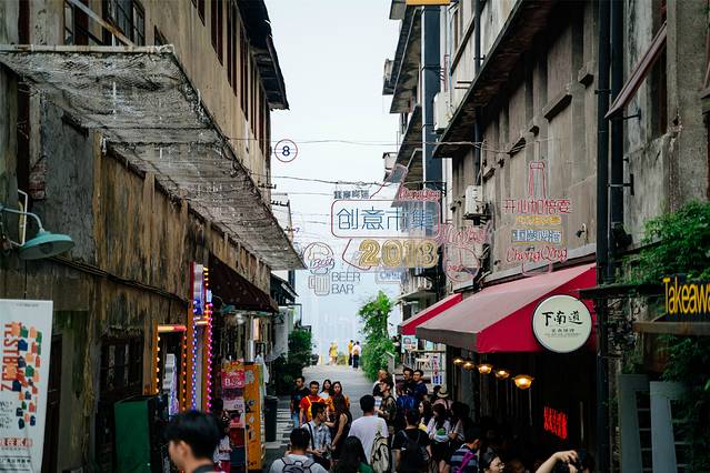 一片灰墙,两摞青砖,西式的罗马柱,中式的飞檐,这是一幅曼妙的水墨画。当一处处民国风格的街区呈现在眼前时,身子仿佛被卷入了一段旧时空里,眼前的东西像老电影里的某处,熟悉而陌生,那个激荡的大时代就这样被一一展开。这是曾经刷爆朋友圈的重庆民国街区