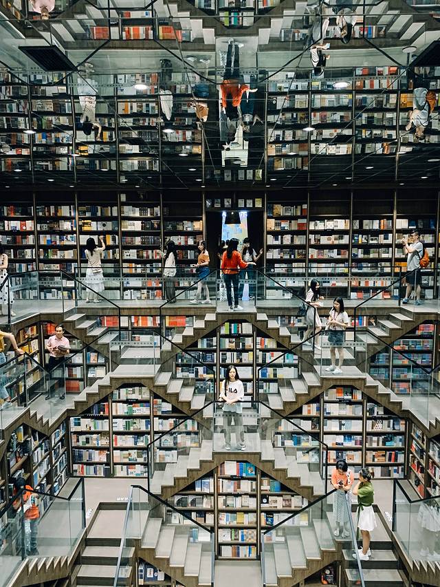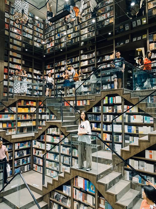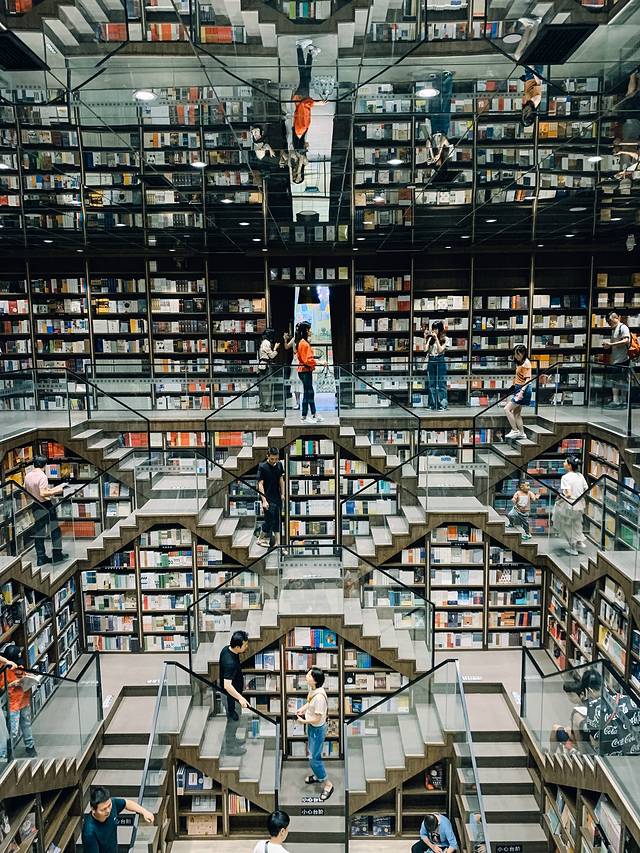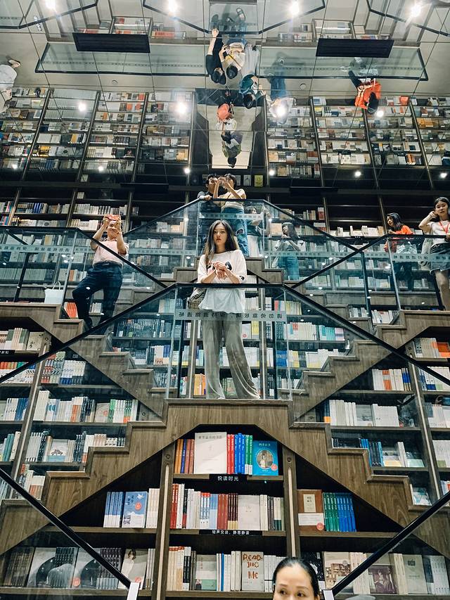 重庆最美书店一钟书阁威拍照看书两不误 第一次去重庆的时候在微博上看见杨家坪新开了一家书店,可是那时候去了刚好赶上它在装修,于是这次有空就马不停蹄赶了过去,坐轻轨到杨家坪先再步行100多米就到中迪广场书店在4楼,里面的人真是门厅若市,基本都是过来拍照打卡的,可能因为刚刚开业,大家凑热闹,等过段时间就可以安静看书了。里面坐的地方很多,还有甜品区,边看书边吃东西还是可以的。