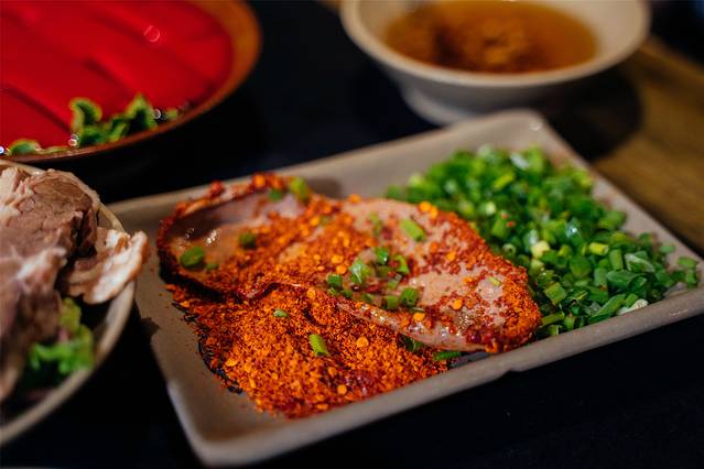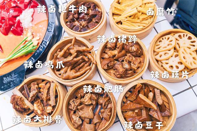 推荐菜品,卤鸡爪和卤牛肉,卤过的软软糯糯,非常饱满的鸡爪和牛肉再放进火锅里加工,瞬间被口感和鲜香征服;辣卤肥肥肠,爱它的人很爱,不爱的人很怕,处理的非常干净,很耙,烫一下再吃绝。还有卤牛筋也很推荐!卤的非常软烂了,卤汁很入味。
