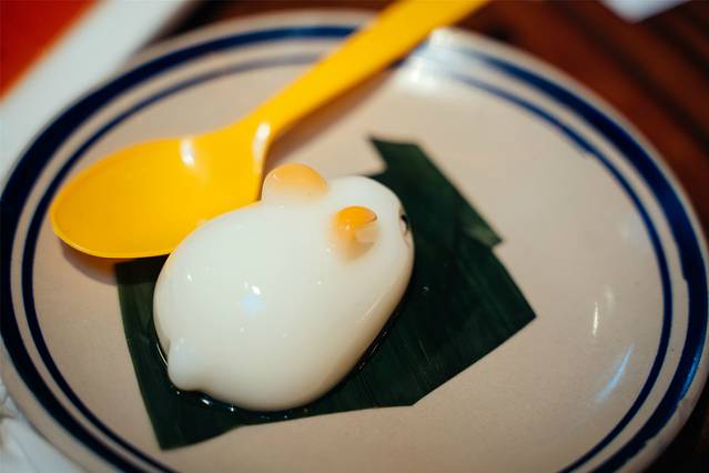 排队拿甜品的食客都赶上门口排队的人 他家的店门口不算很大,但店内设计非常宽敞,内部装修偏复古风,碗和茶杯都是搪瓷的,墙上也有很多复古的文字和装饰的图画,文艺的风格。