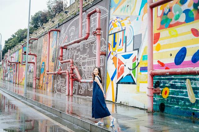刷攻略的时候发现了这个地方,当时就被惊艳了!色彩饱和度很高!!也很具有视觉冲击力,觉得好好看啊!有一种美式街头的感觉。 是一片有着有很多不同风格的涂鸦墙,DC漫画里的小丑,马里奥游戏场景,可爱的猪头,抽象的立体的写实的,应有尽.再加上五颜六色的水管,非常适合拍照。 对面是红酒广场,宜家,金山意库文创区,都是很适合休闲娱乐拍照的地方,在这里结束了参观以后,还可以去附近走走。!! 最重要的是!这几个地方现在人还不是很多。