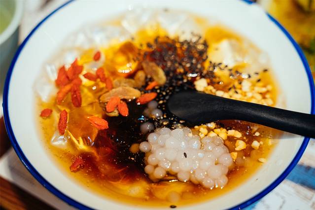 可以无限吃的甜点,有12种,冰沙、冰汤圆、仙草、冰粉之类的,味道居然让我惊喜到了,建强烈推荐杨枝甘露,味道浓郁有层次,西柚、芒果和椰奶的味道混合着西米的爽滑口感,一边吃火锅一边吃甜品,舒服的想尖叫,建议他家的甜品都单独开分店好了。