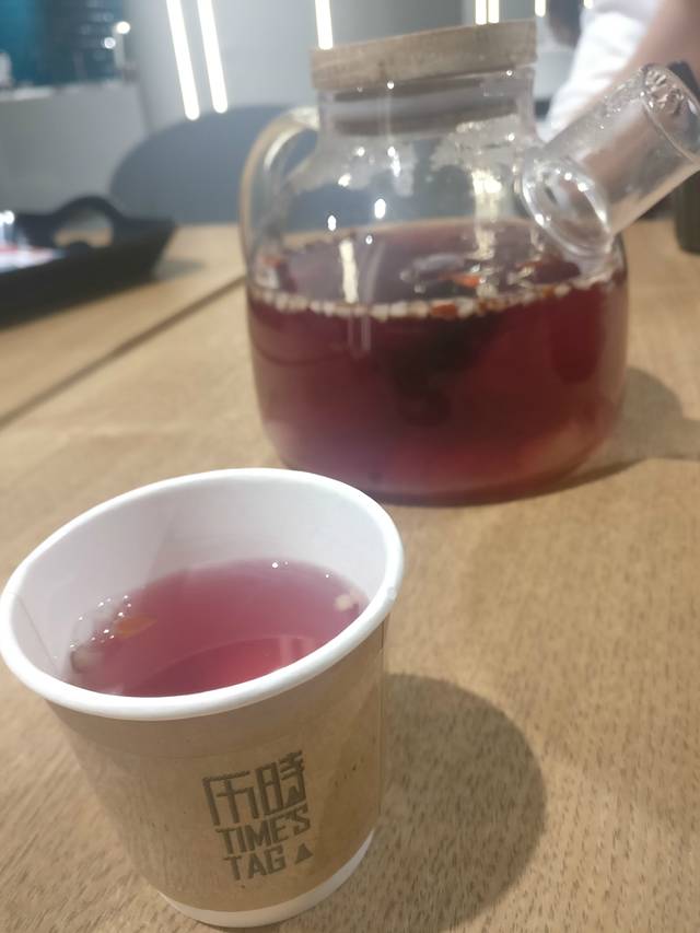 18元一杯的酸梅汤,额,本身就不喜欢的酸梅汤里面都是我不爱吃的蜜饯果脯,同行妹纸买了一杯,我很勉强的给她面子喝了一口~