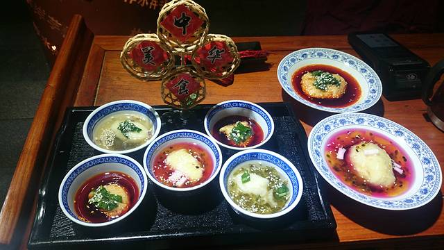 顺着导航左转右转,走到这家网红店,来得早人也不算多,一进大厅,几乎每个人桌上都点着那几样相似的菜色,似乎是这家店的特色菜。我们不免俗的按照网红推荐,点了几个菜,上菜速度很快,配上一小壶桂花酿,总体感觉期望大过现实。价格还算合理,店内装饰也挺有味道的,菜名也挺有文化的,妙笔生花、晾衣毛肚······点了葫芦鸡、晾衣毛肚(主要是看别的桌都点了,挺好看的)、爆炒腰花、胡辣汤,呃,作为家常菜味道是ok的,作为带有小期待的菜来说,一般般了,消费好像是将近200吧~