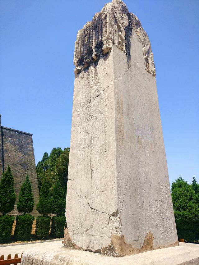 神道尽头左右各有一座碑,我比较感兴趣的就是其中的无字碑,武则天作为中国历史上至今唯一的一位女性皇帝,真的让人有些想了解。无字碑作为她的著名标记,原来早已不是无字,而是被后来历史上的“文化大拿”们留下了各式各样的“在此一游”的标准游客纪念,大家各抒己见挥笔高歌,对这位生前称帝死前又撤掉自己皇帝称号改为皇后与自己丈夫合葬在乾陵的帝王,褒贬不一。无字碑也不是她自己立的,而是她的儿子为她立下的,为何立下无字碑,至今仍是一大谜题。