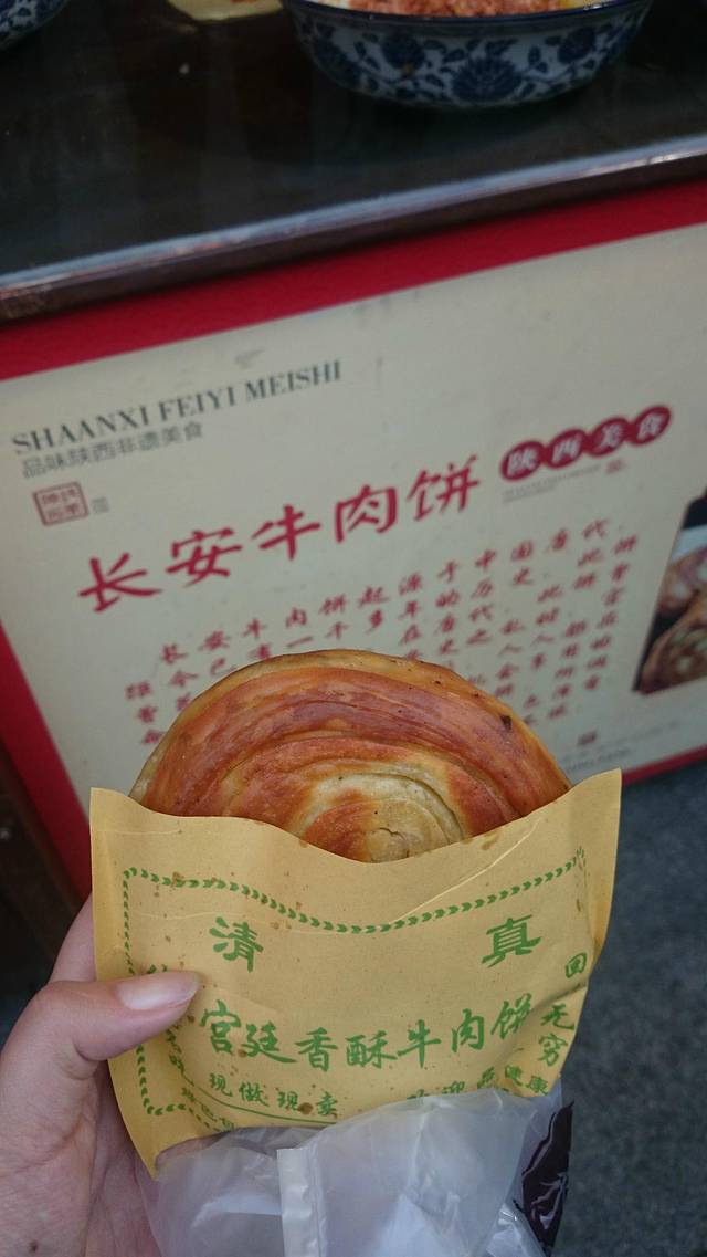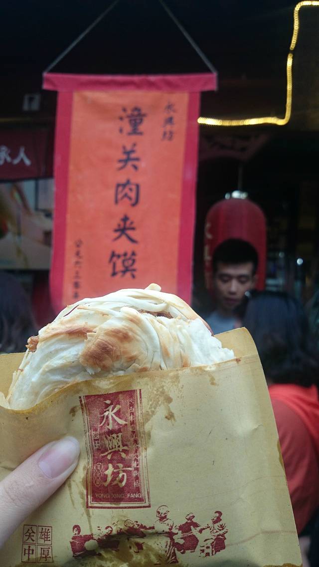 回程之后,晚上就直接杀到永兴坊,果然跟回民街完全不一样,东西也是很良心,没有那些很网红的东西,都是西安比较具代表性的食物。随便排队买,不会踩雷,吃到撑也吃不完的那种。印象最深的当属潼关肉夹馍,在住的地方也买过肉夹馍,完全不能同日而语,排队不是没有理由。子长煎饼有些像我们的肠粉,加上当地的油泼辣子,棒棒哒。在永兴坊就是找排队长的铺子,跟着人群排队就好了。