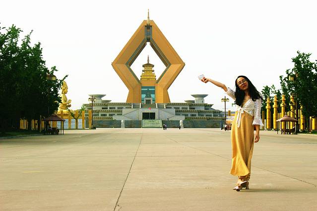 随着导游紧赶慢赶的,赶到了地处宝鸡市的法门寺,恰逢周六,是法门寺镇寺之宝——指骨舍利展示的时间,一进到寺院里面,按照导游的指示上了游览小火车,导游自己也戏称这估计坐得最贵的车了,5分钟不到的路程来回30块。下了车跟着导游一路小跑只是为了赶在4点之前,在舍利还没有收回地宫之前,见到这枚释迦牟尼的真身舍利——灵骨舍利。先人们为了保护这枚真身舍利还造了3枚赝品舍利人称为:“影骨舍利”,想着小时候印象中看到的关于释迦牟尼成佛的一部影片,在当时的我看到是一部很枯燥的影片,一个人老是在不停地走,然后就在一棵树下坐着,都不懂是为了什么。当然,现在的我依旧不明白这些佛理,只是多了些敬畏,心中有所求的拜了拜,静静看着周围一个接一个满脸虔诚地跪拜的,捐功德的,偷偷冒着大不讳拍照留念的······想起看过这么一句:佛说,众生万相皆无相,成佛成魔皆是我。