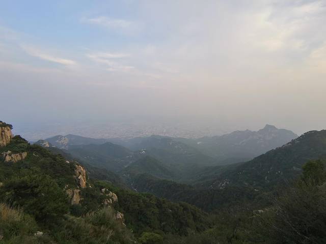 六点半左右的南天门已有些凉意,我们向更高处走去,在向最高处——玉皇顶的探索过程中,暮色也悄然来临。不免要感叹,一览众山小不无道理,在高处整个人的视野和心胸都更加开阔起来。向泰安市里眺望,万家灯火。靠山定居,安逸生活,人间百味。