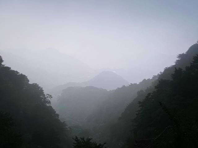 到达泰山已经是下午四点,我们选择从南门的天外村进入,乘坐汽车(30rmb/人)途径环山公路线,到达中天门,之后我们兵分两路——爸妈乘索道(100rmb/人),我与弟弟徒步,约定在南天门汇合。七月末的天气正炎热,不过深山中还算凉爽,两个小时的台阶之行在两侧美景的陪伴下也不显得无味。在途中我不住看BD地图上达到南天门步行还要多久,以此来激励自己,但事实证明,加上途中拍照和休息的时间,真实时间要远远高于理想状态哈哈。