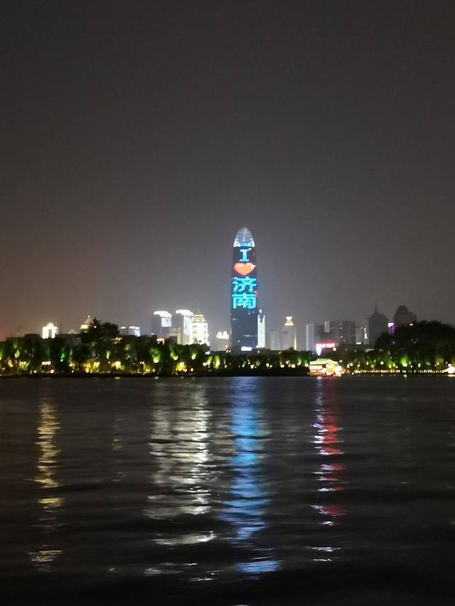 来到济南,怎么能够不去乾隆与夏雨荷浪漫故事的发生地看看。是晚上,我们选择乘游船环湖观赏。大明湖并不大,一圈的游览不过十分钟而已,但是徐徐夏风伴随湖边明灭的灯光,高楼与长亭遥相呼应,也别有一番趣味。下了船,就算是在湖边也难抵夏日的炎热,因此从南门向西边走了一小段路,我们便打道回府,为明天下午的登泰山养精蓄锐。