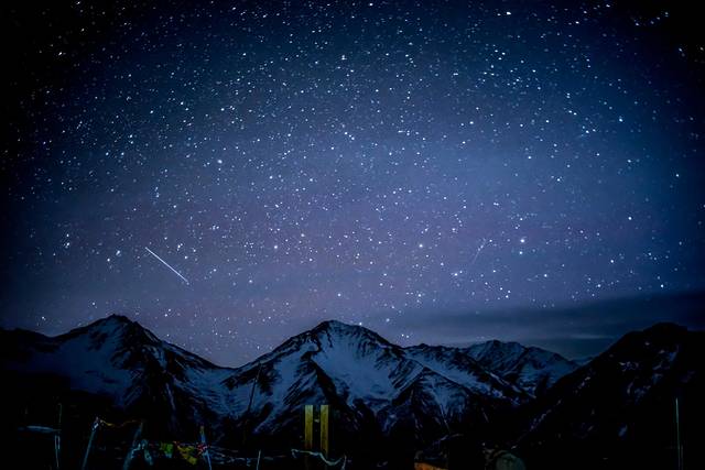 夜晚高山的繁星