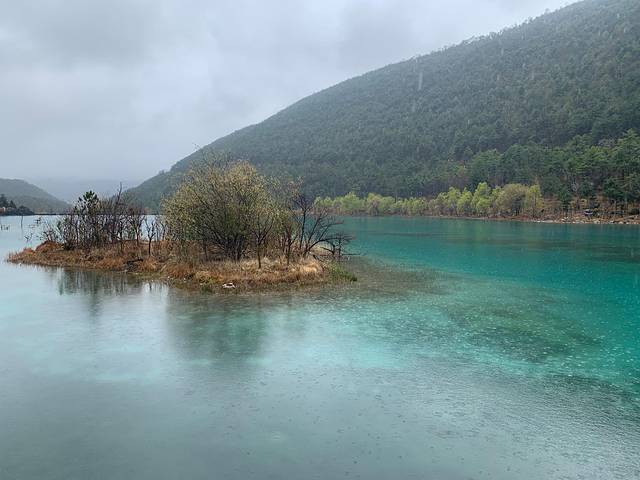 雨中蓝月湖,没太阳的情况就依然跟蓝。