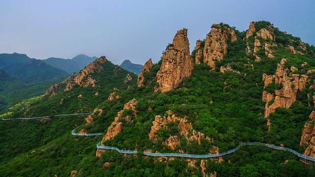 “误入仙人境,人间万事空,挥手从兹去,满月杜鹃红”,这个时节,已经没有满山的杜鹃。在西游仙境,可以望见“唐僧拜祖”唐僧头顶僧帽、双手合十低头参拜,迎面石柱上端坐着弥勒大佛,好动的悟空跳在了大佛身后的山峰上,懒惰的八戒站在山下看着唐僧拜佛,而忠厚的沙僧则紧随唐僧的身后低头参拜。望见了“唐僧拜祖”,也便跌入了大黑山的“西游仙境”。