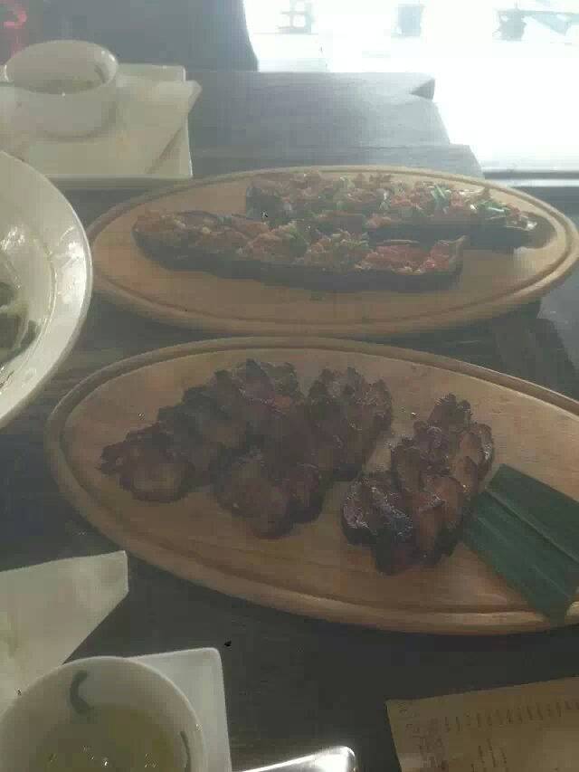 下了飞机后,就直接取行李,找机场大巴,坐了差不多半个多小时到了杭州城站,下车后,打电话给酒店问要怎么走,不一会儿,路痴的我们居然靠自己找到了酒店,好吧,好强!到了酒店,办理完入住后,小休息了一会儿,出发了,搭公交去西湖了,当然因为不知道路,途中转车了,到了之后,发现,风景确实很好啊,可是一抬眼,看见了攻略上很有名的杭州外婆家,赶紧的去取号等候吃饭,这可是不用找就看到的,怎么能错过呢。取完号发现前面还有27桌,好吧,先去西湖边拍拍照,看看风景也好!快到时,发短信提醒,很方便的!我们点了外婆烤肉,酸辣鱼,和炸茄子,真真非常好吃,难怪那么有名,真是边吃边夸啊!