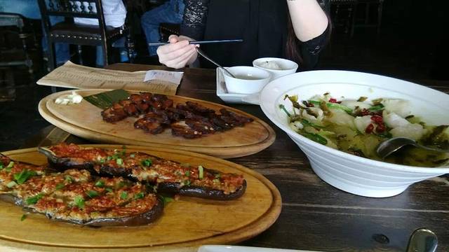 不过,没有关系,民宿老板说,跟他们合作了两年了,当然安全,所以我就放心地坐了!走的时候老板还送了我们姑嫂饼,不多,但是那个袋子我很喜欢,一点心意嘛,宿雨阁的老板真的是非常非常的好啊!然后我们就搭着黑车去西塘了,到了西塘之后,本来是说可以送我们到民宿的,可是,司机说,问下民宿老板可不可以来接,如果可以的话,就来接,不行再送我们过去,我们打电话给民宿老板时,已经到了西塘电影院了。老板很惊讶,我们都到西塘电影院了呀,是呀,因为有提前跟她说,她说,她一会就来接,到的时候,老板送人去景区,所以赶紧叫她女儿过来接我们,等了一会儿,她女儿来了,牵了只黑色的狗狗,也是挺热情的人儿,我们跟着她女儿步行来到客栈,因为挺近的,不过到了一看,房间比在网上的照片上看起来小了好多的感觉,不由得又想起了乌镇的宿雨阁了,哎!办理完入住后,我们就去景区了,当然我们叫老板在我们买了半价的景区票50元/人,拿着票,我们就逛景区去了,相当近,也是100米左右的距离吧,到了景区之后,发现,西塘真的是好吵的一个地儿,相当热闹的样子,也是水乡,但是没有乌镇安静,到了西塘我们就先是乱逛,但是一抬头,不好意思,又看到了网上力荐的饭店“老品芳”怎么能错过呢,赶紧的,看见不是人很多,就赶紧的去占座,吃饭了,点了些网上推荐的菜,味道是相当不错的,我们吃的时候,发现,排队的人越来越多了,我们还边吃边笑自己运气好!而且吃的也真的是物美价廉的啊,这家店桌子不多,位置也不多,所以到了饭点,肯定是要排队的,而且还得在板凳上自己排队来着呢,中午我们吃的很顺利,晚上就没有了,晚上我们还想吃这家,结果就得排队去了,感觉西塘的景点我们不是玩的很多,玩的比较少的样子,因为我们把所有的礼物都压在来西塘买了,挑了好久的礼物