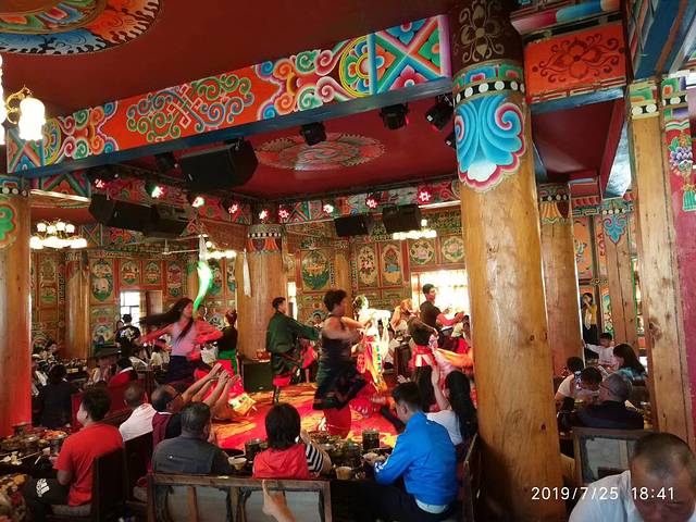 到了下午五点多,参加土司晚宴!有牦牛肉、藏香猪肉、高原白菜、烧鸡、黑山羊等!
