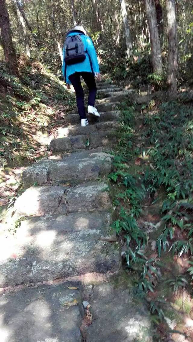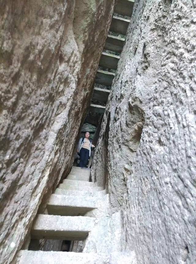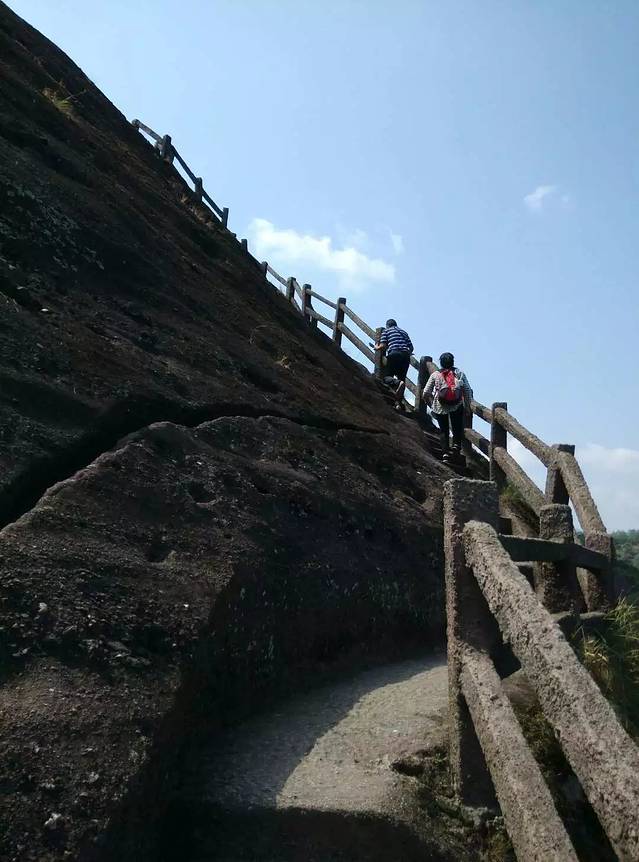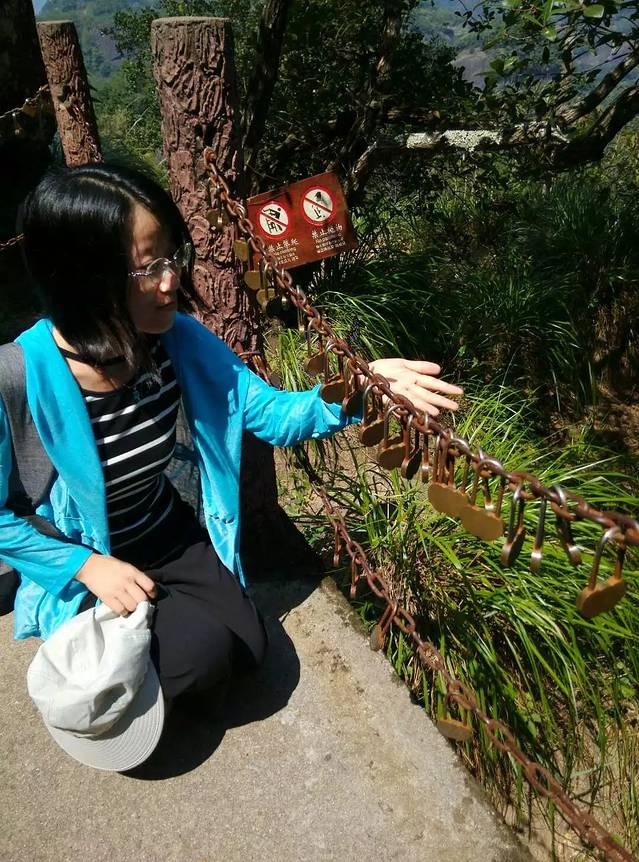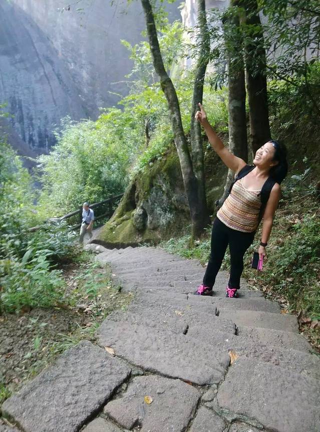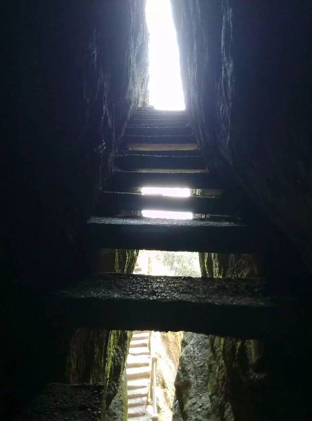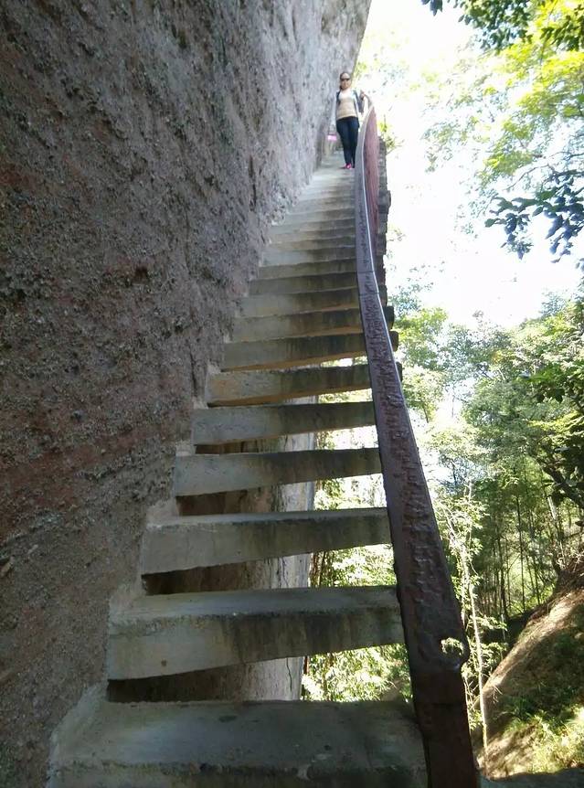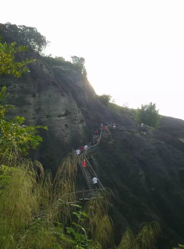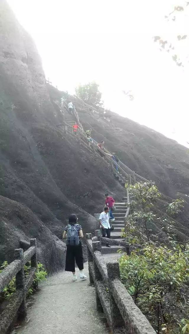 一大早起来,我以为我的脚废了呢,没想到,睁开眼的第一句话就是,我的脚还能动啊,把小姑都给笑醒了。她心心念念的大红袍还没有去呢。不过到了景区,问了下去大红袍的路线。结果工作人员说,今天交通管制,在全国自行车赛,要12点半后才能去大红袍。真是起了个大早,赶了个晚集呀。不过,来都来了,要不去大王峰吧。这个景点,调度人员说,去的人比较少。我在去和不去中纠结着,而小姑好像很有兴趣。所以到了大王峰下面。我说,我们去吧,如果真的很陡,很险,我们就往回走不上去,她说好。我们就出发了。结果那阶梯何止是陡啊。我走个100米左右,就坐那不走了。反正下山也只有一条路。小姑往上走,我就在下面坐着等。可是等不到一会,来了一群小伙伴,他们说一起走嘛,人多热闹。然后我就走了。一路上,真是走上了取经路。一直往上爬。阶梯都呈90度上升了。难怪旅游团不会带人来,要是带人,估计一人在开头一人会在结尾吧。反正我不知道我走了多少阶梯。到了最顶峰的时候,来了个天梯。那种在石头里面卡着的,峰回路转的。脚下就是悬空的悬崖。我一下子心里没底了,到底要不要往上走。我故意打探似的问小姑,可不可以上啊?我心里想的是,她说不可以,我们就可以走回头路了,可是结果姑姑来了句,可以!那就上吧。但是走上去,还是很有意思的,虽然没走的时候,真的是有点心虚的说。大王峰就这段路有意思,然后到了顶峰也就那样呗!下来的时候,虽说下山容易,可是因为太陡了,我都觉得我一不小心就能滚下来的感觉。下了不知多少的阶梯,下得我都觉得,我刚是怎么爬上去的,怎么那么多的阶梯呢。要命啊。好多人都拿树干当拐,那会儿,我也很想拿的说。只是没有找到。累哭。