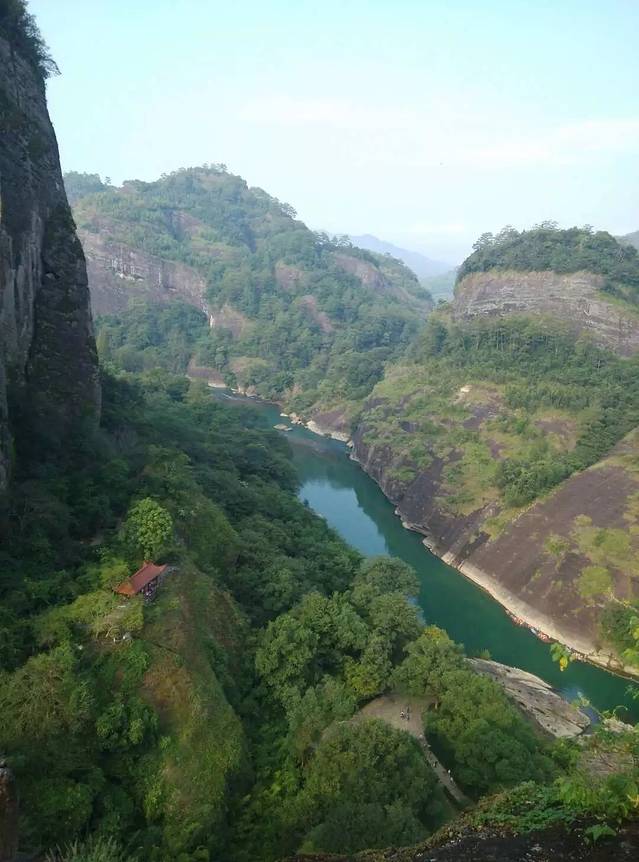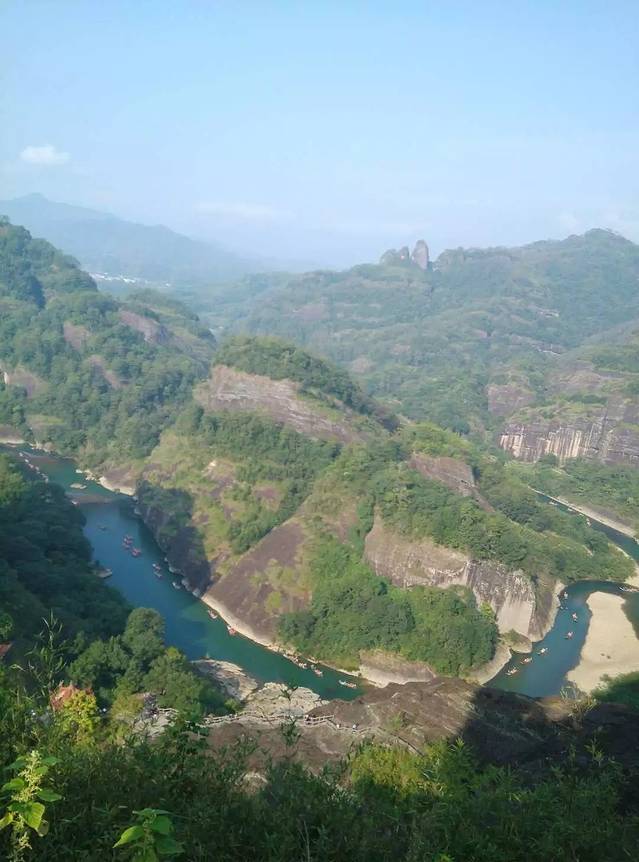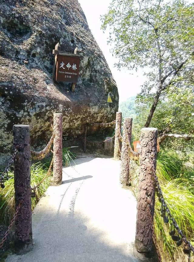 知道肯定人会很多。我第二天一大早就起来,这次没有坐7路车。而是直接打车到景区门口,因为不想等。第一站,奔向“天游峰”武夷山第一景,人人都会去。去的时候人还算少。一路上虽然抖,但还是很有兴趣的往上爬。到了一半的时候,看到一个老奶奶,把我惊呆了,我都不好意思喊累了。不过天游峰我也没有喊累。就是走走停停。然后也就到了。下了山之后才真的把我惊呆了。人都是排着队上山的,那个人流啊,吓死我了,幸亏我们来的早。然后我们就又跑到了虎啸岩。这个虎啸岩一点都不比天游峰差,有一个好汉坡,翻过好汉坡,你以为你就是好汉了,不,是流了好多汗。天游峰的时候我还敢往陡的方向原路返回。而这个陡啊。 我是真的没有勇气返回了。说什么都不回了。果断从另一个方向下去。而此峰的山顶,有一个特别好的大叔叔,他请我们喝茶了。那么高的山,他说,铺路搭桥这种大事他做不来,但是,泡点茶给我们喝是可以做到的。人真好。最上面有一个“定命桥”说走一圈官运,两圈财运,三圈桃花运。不过,我2的脑袋没有反应过来。我给走了4圈,别问我什么运了,啥运都没有了。哈哈哈!