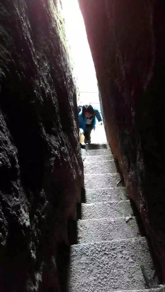 在山顶上休息了好长时间,补充了体力了才下的山。一下山,就赶紧去“一线天”到了一线天的时候,人还不是很多。还遇到了昨天那两个一起坐竹筏的人。打了个招呼就赶紧去一线天。不过里面真的是蛮黑的啊。排着队,人也不过,就是好奇怪,怎么人就卡那里动不了呢?结果,越往里走才知道,里面有一个只有30厘米宽的地方,我正着走,压根就过不去好么。不得已,我只好侧身走了,长这么大,第一次觉得自已那么胖,真是不好意思。出了一线天,发现人流越来越多越来越多,那么多人,得什么时候才能走完一线天呢,暗自庆幸自已的安排。不然这一天的时候估计都卡在里面排队中了,而我们这一天都在别人的前面。排队是什么玩意,压根就不懂。真是机智如我啊。小姑也一直说我真会安排。哈哈哈,嘚瑟中………………