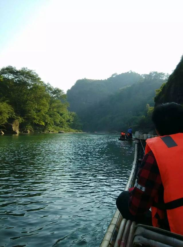 到了景区,因为老板已经帮我们定好了三日通票了,所以我们先在自助区里把三日通票取出来,这票包括了景区的旅游通车,凭票可以坐任何的景区车。拿完票,赶紧到窗口买竹筏,幸好还有一趟3点半的。果断下手。拿着票过了景区大门,奔向景区的区间车。去哪都有路标指示,每个景点的门口也有景区的调度人员,你要去哪里,告诉他,他会帮你调车的。只需在那等便是了。到了竹筏点的时候,还没到大门口就被拼走了。因为一个竹筏是6人。只有人数够了才能走。而我们俩个到了景区门口就有人冲我们说,你们几个人呢,有没有四个人,我们一起吧。我说我们只有两个人,他说不够,还要再找。我说,你去找吧,然后把我们两带上可以吗。他说当然可以了,你们要等我 ,不能让人拼走哦。然后我就在那等,等的时候还有人来问我们,他赶紧杀回来说,这两个人我们拼走了。然后他又拼到了两个,我们一筏6人够了。就跟着他去排队了。而且好巧他帮我们凑的两人中,有两个是我们的同乡。所以一路就玩的很嗨。玩了一下午,九曲确实挺漂亮的。不过让我想起了留下遗憾的漓江。哎。玩了一下午。我一直在想一个问题,刚刚拼的那个本地人,他又没有坐竹筏。为什么要帮我们忙上忙下的呢,图什么呢。当了我们一下午的专职导游了。我才知道是另外两个北方人的专属导游,然后他俩说,没关系,你用。哈哈哈,我真的是不知道啊!不过那两个也挺好的,一路上气场太大了。但是对我们还是很和蔼的。游完竹筏也差不多5点多了,然后走了下宋街就回去了。坐7路车去和回。都是一站路。超级方便。(民宿离武夷山景区只有一站的距离)