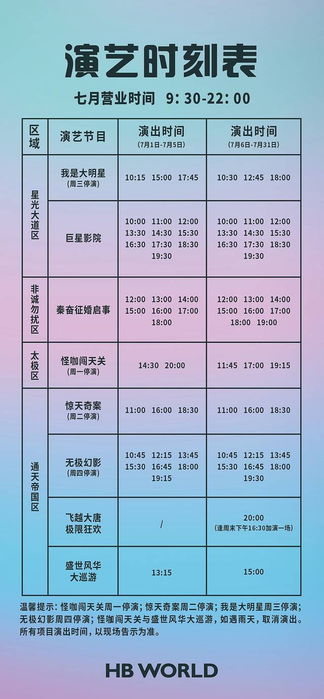 景区非常大,共分为五个区域,分别是星光大道、非诚勿扰、太极、通天帝国、集结号,除了集结号之外,其他四个区域会有演出表演,不过是在特定时间段的,需要提前看好(偷偷告诉你哟,可以关注一下华谊兄弟电影世界的微信,里面有各个片区演出的时刻表,嘻嘻,看我这机智的小脑袋瓜!)
