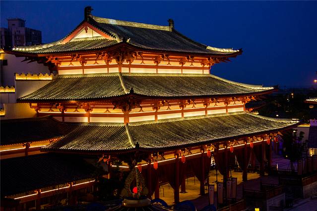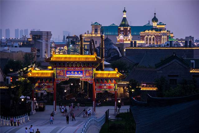 夜幕下的通天帝国区域仿古建筑真的超级美!