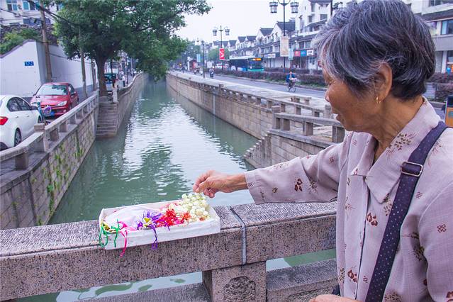 不过遗憾的是虽然离哑巴生煎很近,奈何一大早七点就开始排长队,受不了等候的人只好选择放弃,不过老苏州随处可见的卖花婆婆安抚了本宝宝受伤的心灵,于是花了5块钱在婆婆这里买了两串茉莉花“手环”,芳香四溢,立马开心起来!