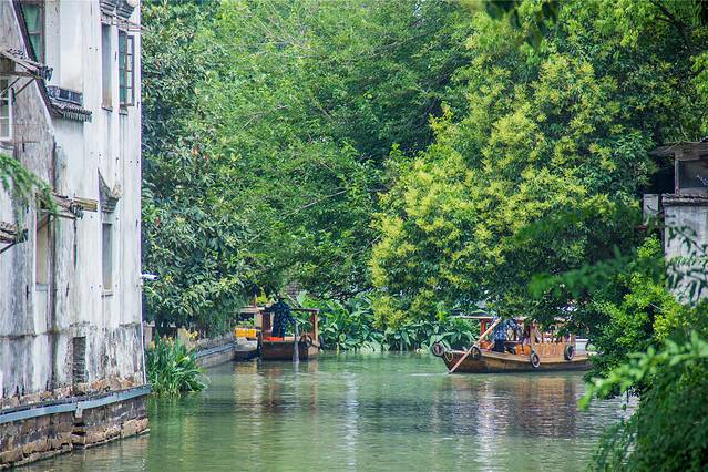 不知道是不是因为换了一个入口进入,与前次相比,平江路有了许多的变化,比如穿城而过的河流更加幽深,街区的树木和店铺更加深邃,店门口的绿植似要把一家家的店铺掩藏起来,而河面上也多了摇橹船和船娘。