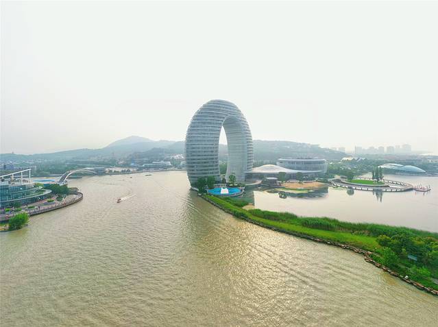 当然,最让人瞩目的,还是被誉为“太湖明珠”的喜来登温泉度假酒店酒店,由世界知名建筑大师马岩松先生主创设计,高101.2米,宽116米,总建筑面积6.5万平方米,为国内首家水上白金七星级酒店,既与150公里外的上海“东方明珠”遥相呼应,又能和同为水上酒店的阿联酋迪拜“帆船酒店”一较高下,成为湖州“世界第九湾”的标志性建筑。