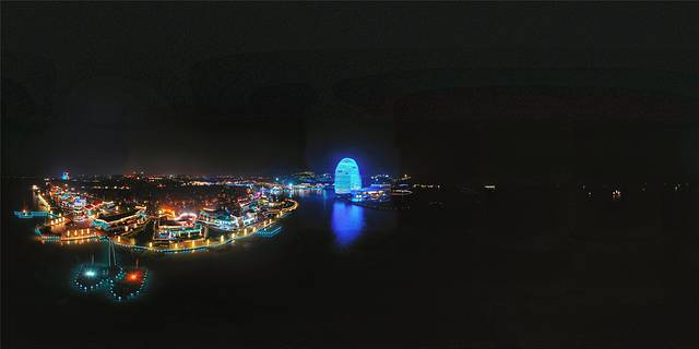 每当夜幕降临,华灯初上,太湖明珠就会迎来高光时刻,各种颜色的灯光任意切换,与澄净的湖水相互映衬,梦幻感十足,就像月亮坠入了太湖,惊艳指数瞬间爆棚,故而又有“月亮酒店”的美称。