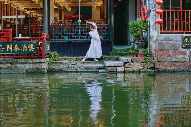 都说一日之计在于晨,清晨时分,正好是古镇清汤挂面之际,清水出芙蓉,天然去雕饰,店铺基本上都没开门,行人也寥寥无几。清风徐来,水波不兴,空气里都透着一股清香,一切都是最美好的模样。