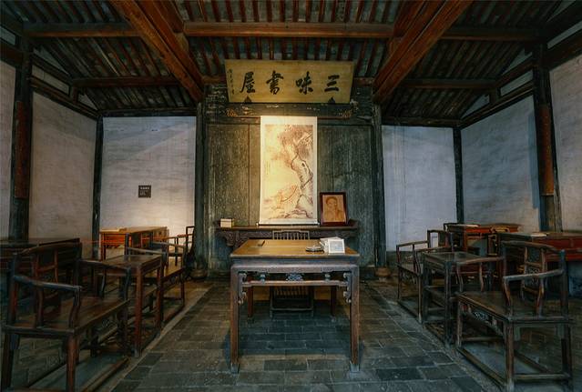 三味书屋乃是晚清绍兴府城内著名私塾,也是鲁迅12岁至17岁求学的地方。当地宿儒寿镜吾曾在此教书达60年,从房屋建筑到室内陈设以至周围环境,基本保持着当年原的面貌,一如鲁迅先生所描述的那样:“从一扇黑油的竹门进去,第三间是书房,中间挂着一块匾道:三味书屋;匾下面是一幅画,画着一只很肥大的梅花鹿伏在古树下。”